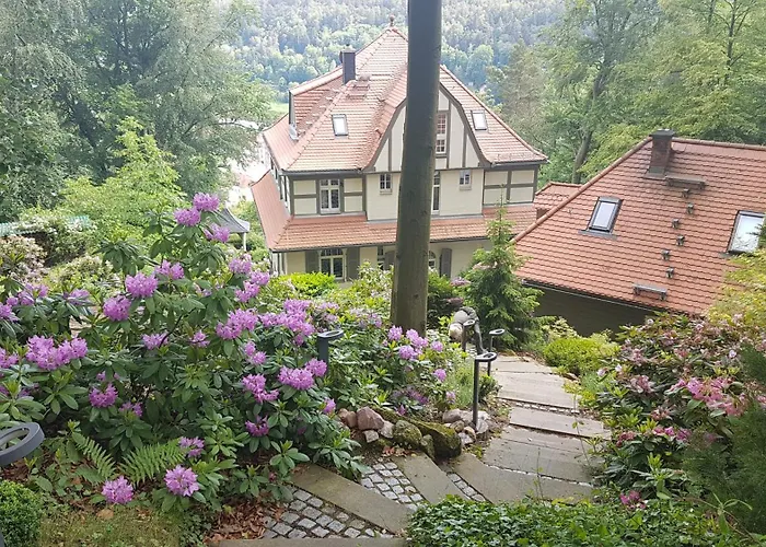 Villa Sonnenburg dairesi bahçe manzaralı ve Saxon Switzerland National Park Sachsische Schweiz National Park yakınında bulunmaktadır. Daire 180 m²lik olup 4 yatak odası, 4 banyo ve tam donanımlı mutfağa sahiptir.